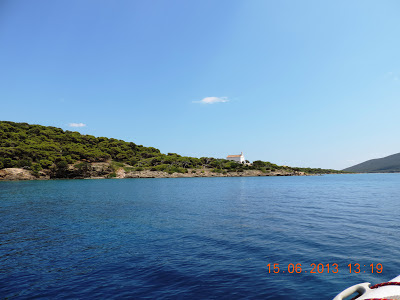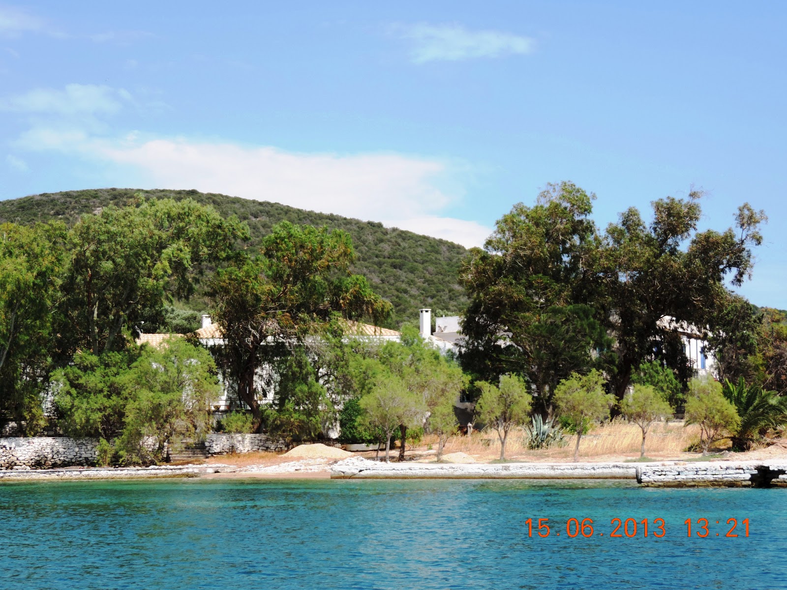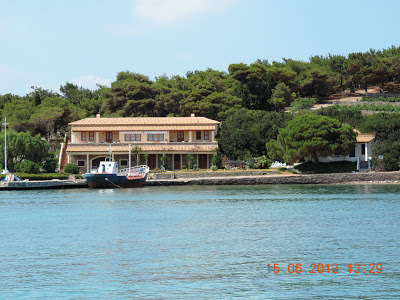 Πρώτα βλέπουμε το νησάκι, ιδιοκτησίας του κ.Εμπειρίκου, με το καλοκαιρινό ανάκτορο του βασιλιά Γεωργίου.