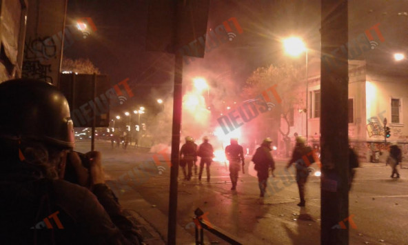 Χαμός στην Πατησίων! Οι αστυνομικοί έξω από το Πολυτεχνείο, οι αντιεξουσιαστές μέσα, ο πόλεμος μολότοφ και δακρυγόνων συνεχίζεται!