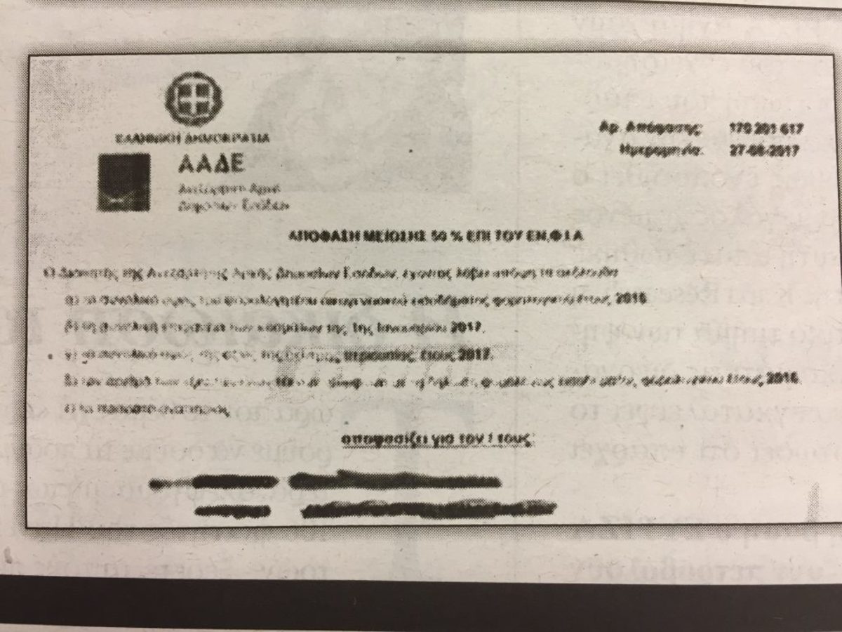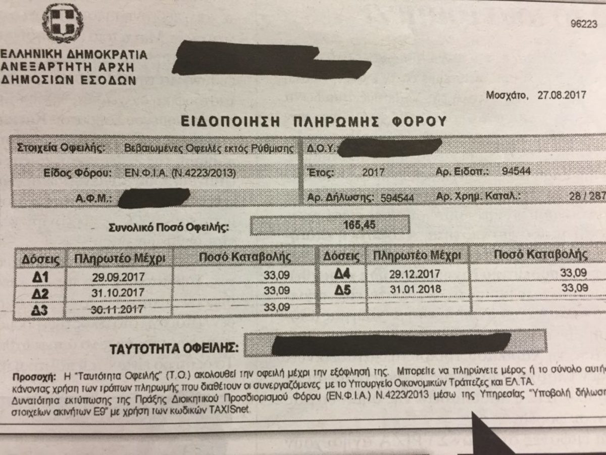 Ο ΕΦΝΙΑ είναι εδώ και τα ειδοποιητήρια πέφτουν βροχή. Μονάχα που όπως αποδεικνύεται ο φόρος ακινήτων … πέφτει επί δικαίων και αδίκων.