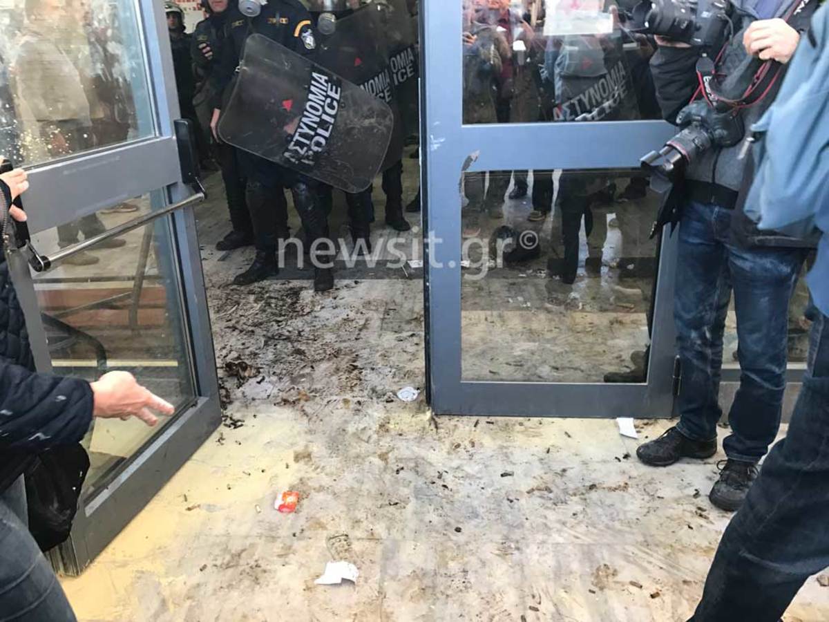 Η ατμόσφαιρα είναι αποπνικτική αφού τα χημικά έπεσαν σε κλειστό χώρο. Οι αστυνομικές δυνάμεις κατάφεραν μετά από την άγρια σύγκρουση να βγάλουν τους διαδηλωτές έξω από το κτίριο. Η κατάσταση παραμένει έκρυθμη.