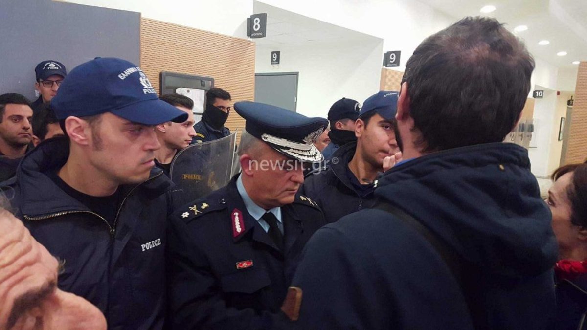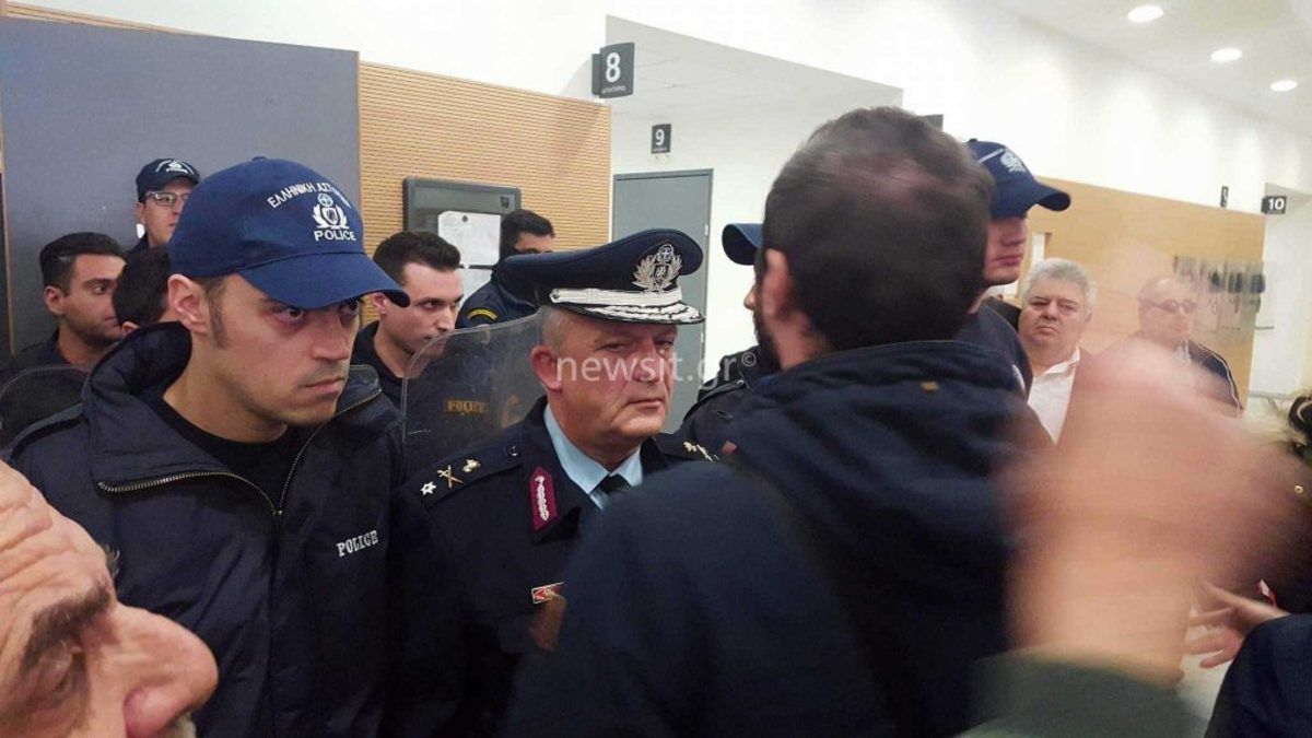 Παντού υπάρχουν αστυνομικοί, ακόμα και στην έδρα, ενω δεν επιτρέπεται ούτε η είσοδος στους δημοσιογράφους στην δικαστική αίθουσα.