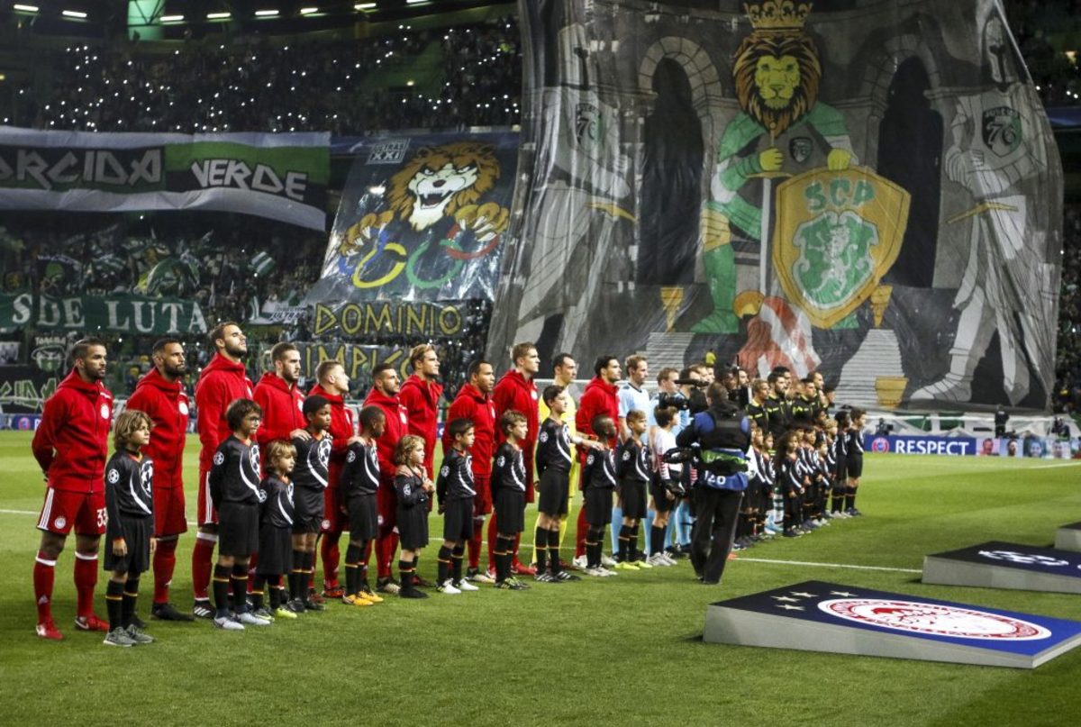 Λίγο πριν τη σέντρα του Σπόρτινγκ – Ολυμπιακός και κατά την έξοδο των δυο ομάδων στον αγωνιστικό χώρο, οι οπαδοί των γηπεδούχων αποκάλυψαν το εντυπωσιακό κορεό που δημιούργησαν.