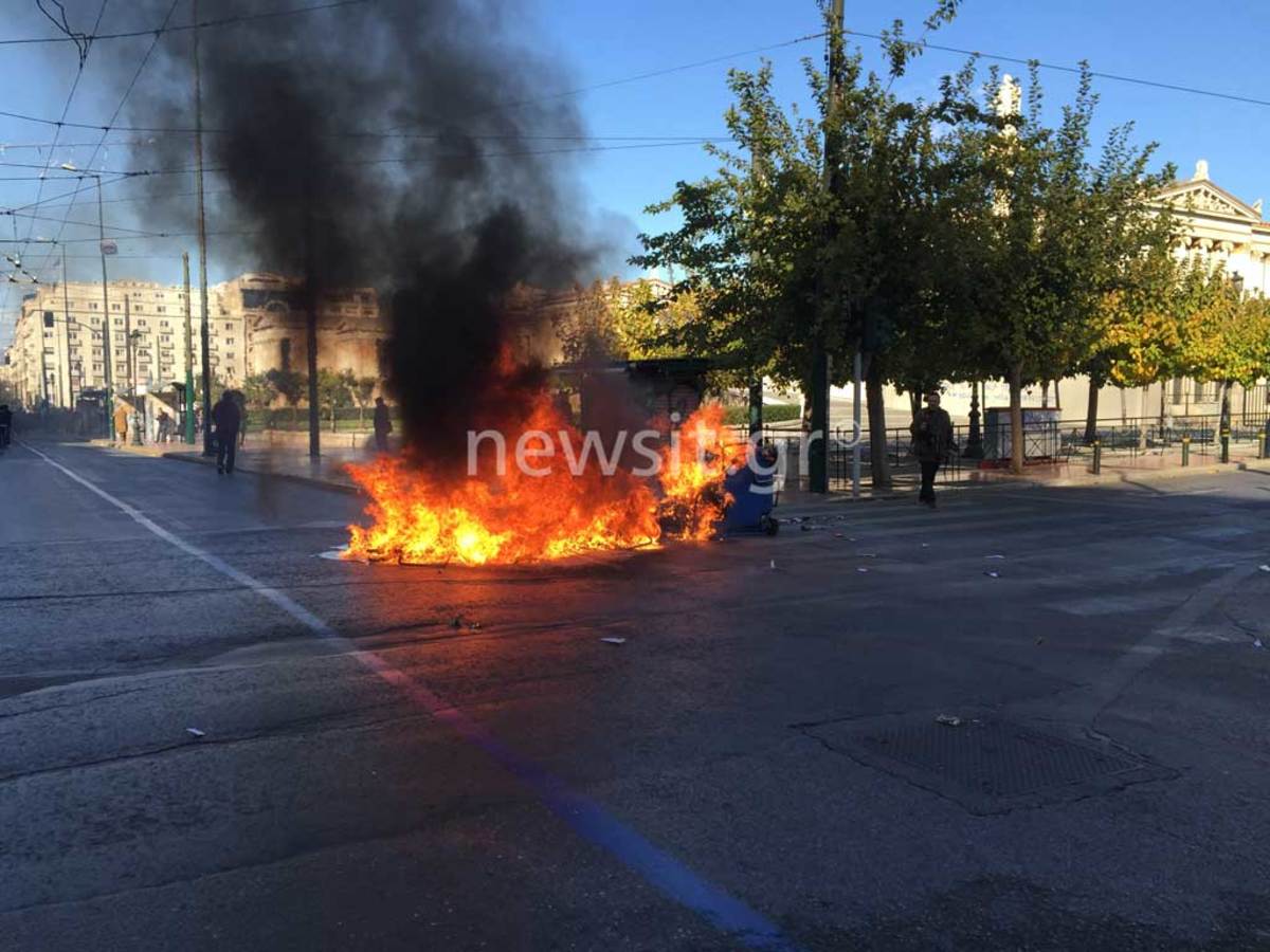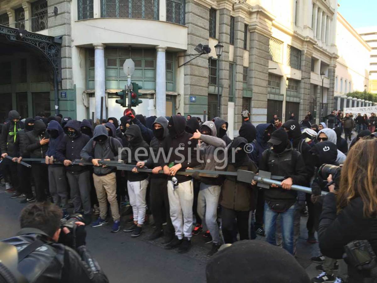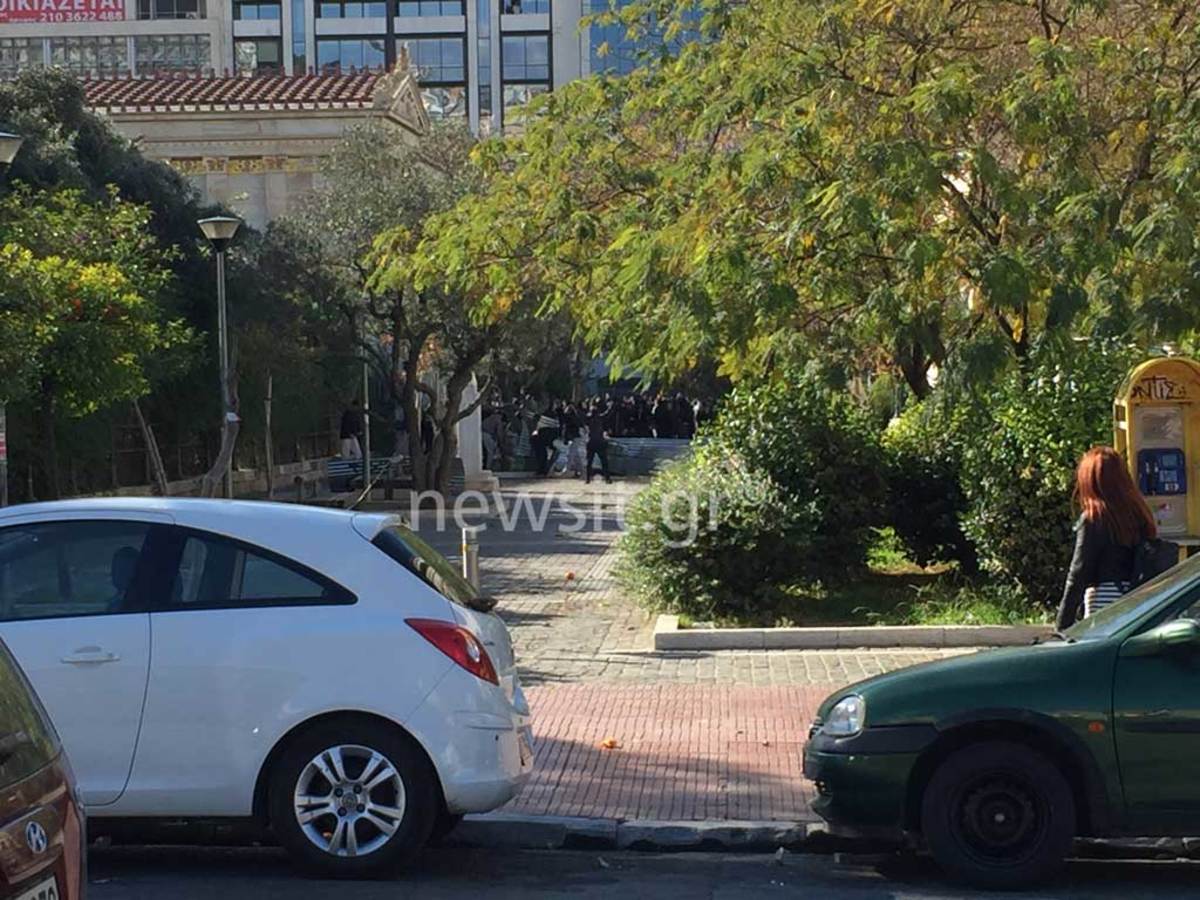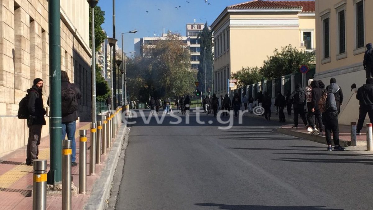 Οι κουκουλοφόροι έστησαν οδόφραγμα στην Μασαλλίας στα Προπύλαια. Στην συνέχεια κατευθύνθηκαν στην οδό Πανεπιστημίου ξηλώνοντας πινακίδες και σπάζοντας φανάρια αλλά και ό,τι έβρισκαν μπροστά τους. Επίσης έβαλαν φωτιά σε κάδους.